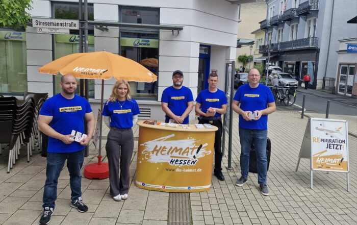 In der ersten Juniwoche führte der Heimat-Verband die Aktionswoche unter dem Motto: "Remigration schafft Wohnraum & Sicherheit" durch. Am ersten Tag wurde die Kreisstadt Friedberg aufgesucht. In den darauffolgenden Tagen Butzbach, Bad Vilbel und Bad [...]